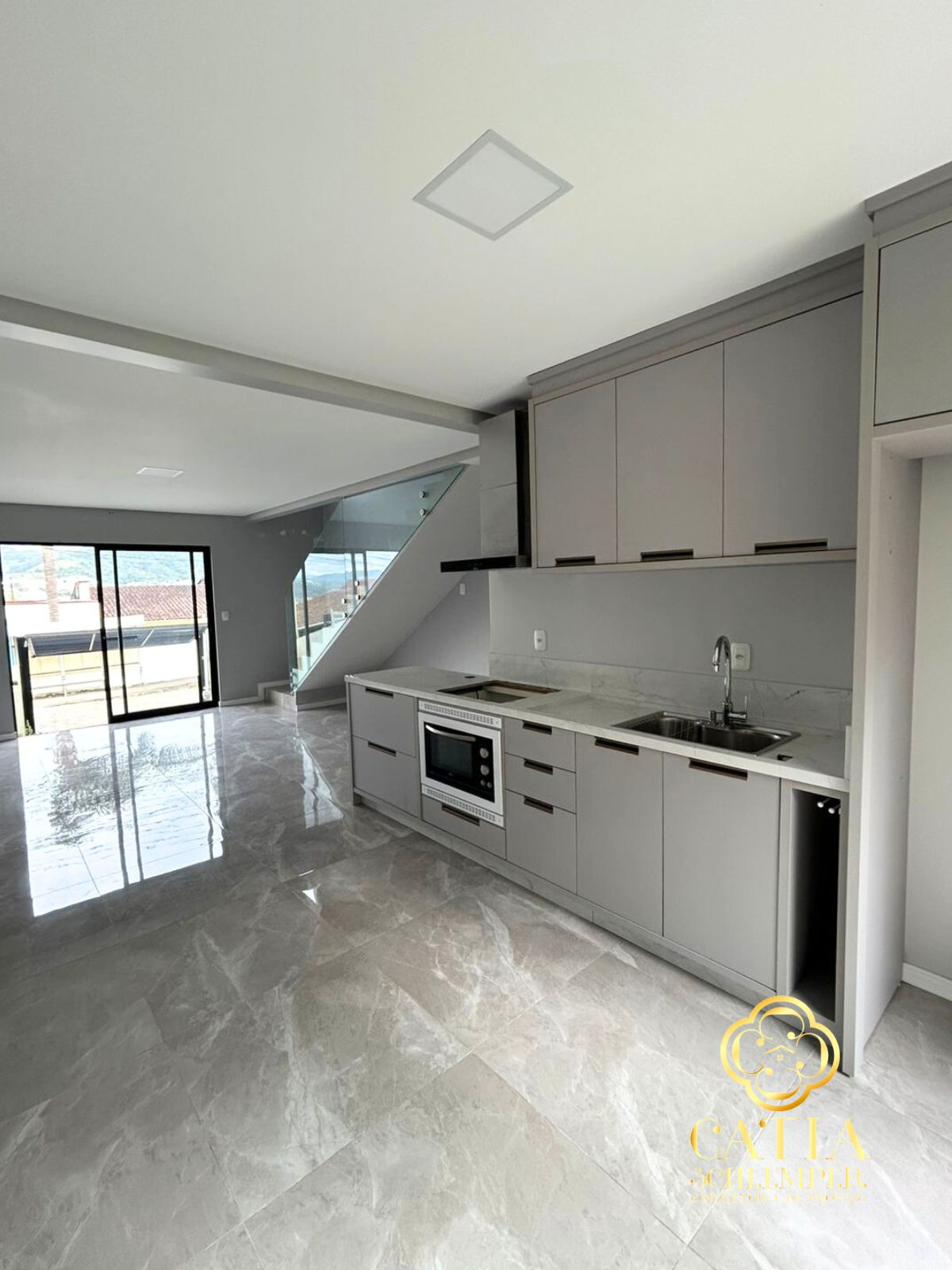 - Living integrado (sala de estar/TV, sala de jantar e cozinha já equipada)