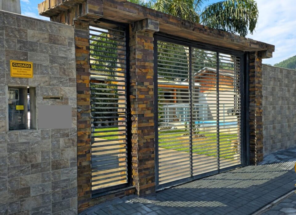 - Casa de alvenaria murada e cercada, com portão eletrônico